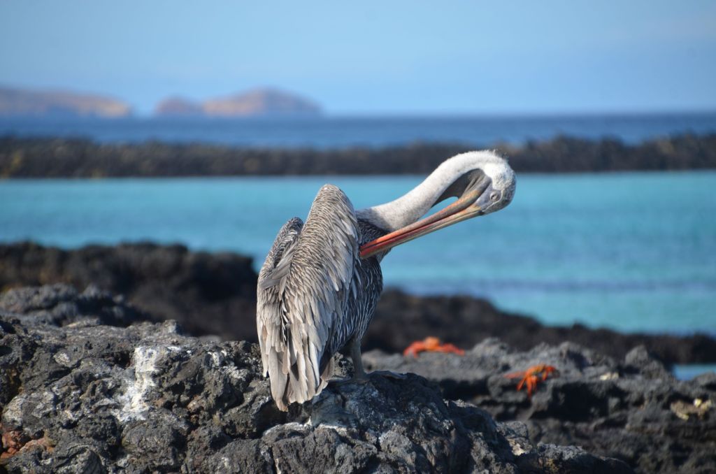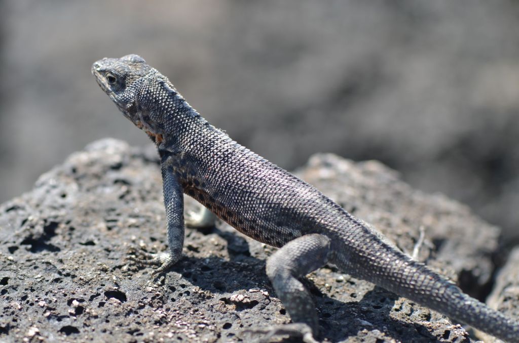 Am Wendepunkt unseres Spaziergangs wimmelt es vor rauschender Brandung von Seelöwen, Lavaechsen und roten Klippenkrabben.