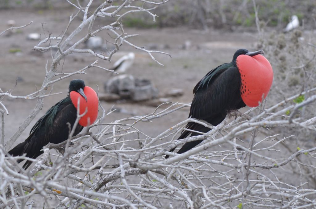 An Land dann wieder – wenig überraschend – viele Vögel. Allgemein finden sich auf der Insel mehr Bindenfregattvögel. Sie zeichnen sich im Gegensatz zu den bisher öfters gesehenen Prachtfregattvögeln durch einen herzförmigen roten Kehlsack sowie teils grünliche Flügelfedern aus.