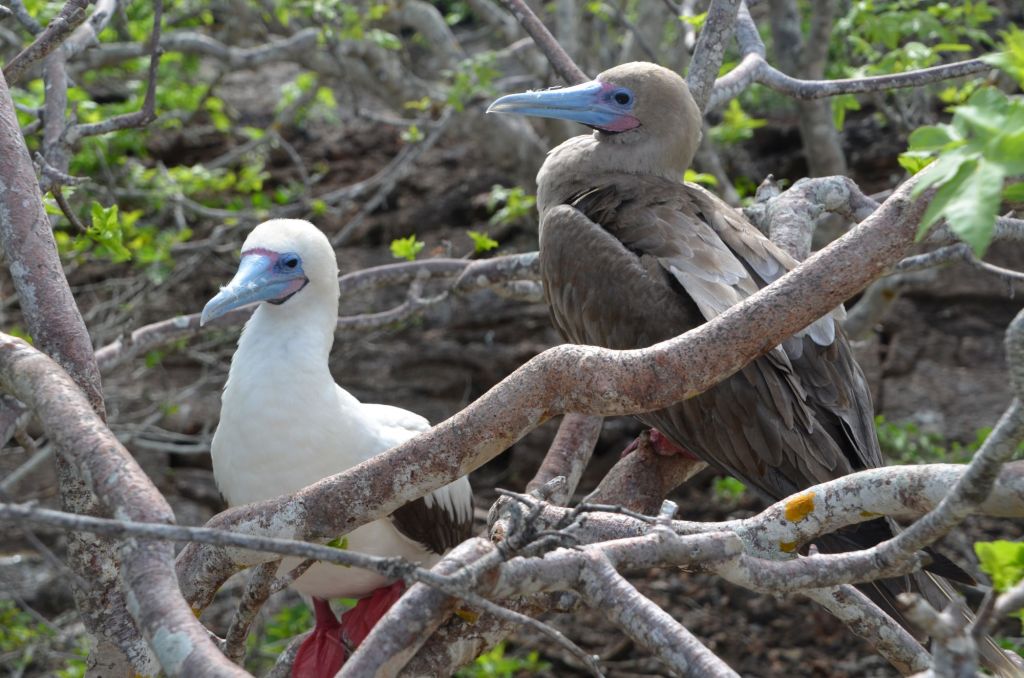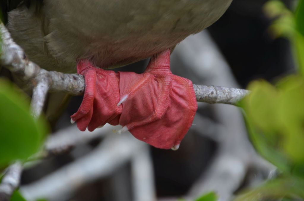 In den Mangroven nisten überall Rotfußtölpel. Auch hier ist der Name Programm… mit dem zweiten großen Unterschied, dass der Rotfußtölpel sich im Gegensatz zu seinem blauen Verwandten an Zweigen festkrallen kann.