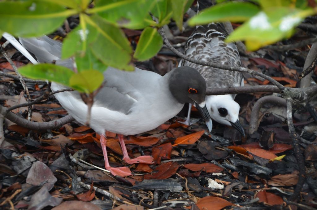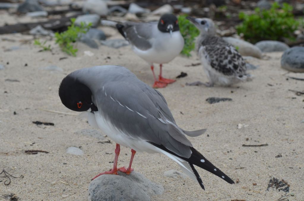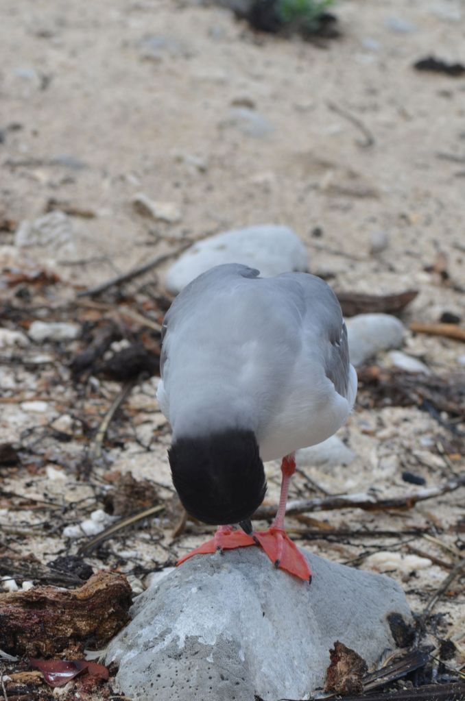Schon am Strand werden wir, neben den üblichen Seelöwen, ausgesprochen gefiedert empfangen. Auf den ersten Blick erklärt Maila die Gabelschwanzmöwe zu ihrem neuen Lieblingsvogel. Es ist aber auch wirklich ein schönes Tier. Weißer Bauch, graue Flügel und aus Ihrem schwarzen Kopf stechen die rot umrandeten Augen hervor.