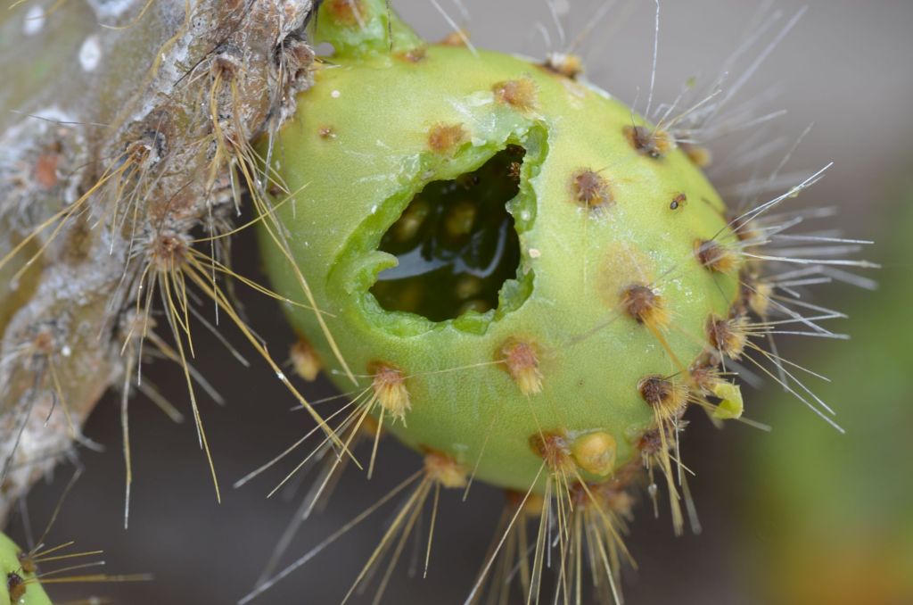 Auch die Flora bietet interessante Eindrücke. Die gelb blühenden Kakteen haben hier weiche Stacheln. Fast schon wie Haare. Der Grund ist simpel. Es gibt niemanden, der sie frisst. Da braucht man auch keine Energie in harte Stacheln stecken. Ok, die Früchte sind vor Dawinfinken nicht sicher, doch daran würden auch harte Stacheln nichts ändern.