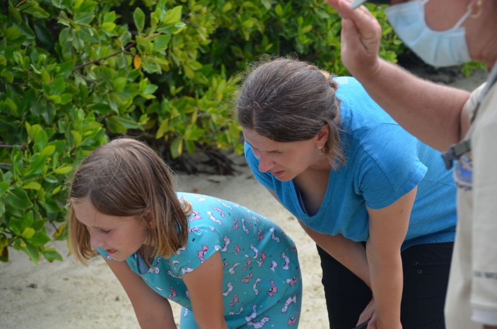 Faszinierend ist die Fortpflanzungsstrategie der roten Mangrove. Aus den Knopfsamen bilden sich längliche, bohnenförmige Sprösslinge mit Sollbruchstelle. Sie bilden im Grunde schon eine komplette kleine Pflanze mit Stiel und Blatt. Nach dem Runterfallen bleiben sie oft gleich im Sand stecken und schlagen schnell Wurzeln. Aber es macht ihnen auch nichts aus, ein Jahr mit den Gezeitenströmen zu treiben.