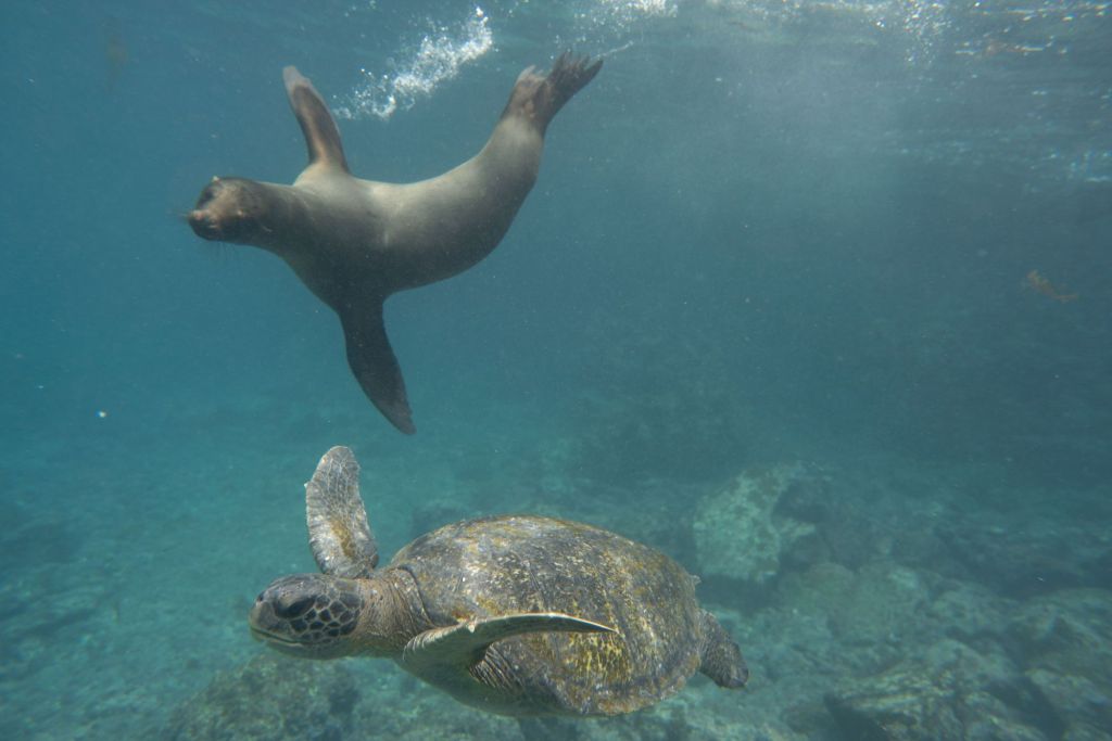 In Galápagos waren wir fast jeden Tag baden oder eher schnorcheln. Wir bekamen Flossen und eine Taucherbrille mit Schnorchel, wurden dann in eine Schnorchelbucht gefahren und sind ins Wasser gesprungen.