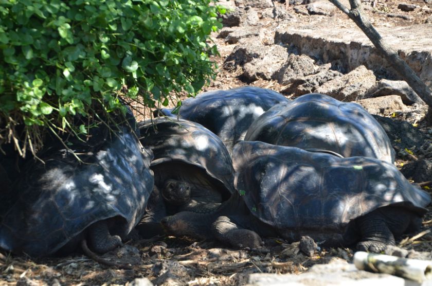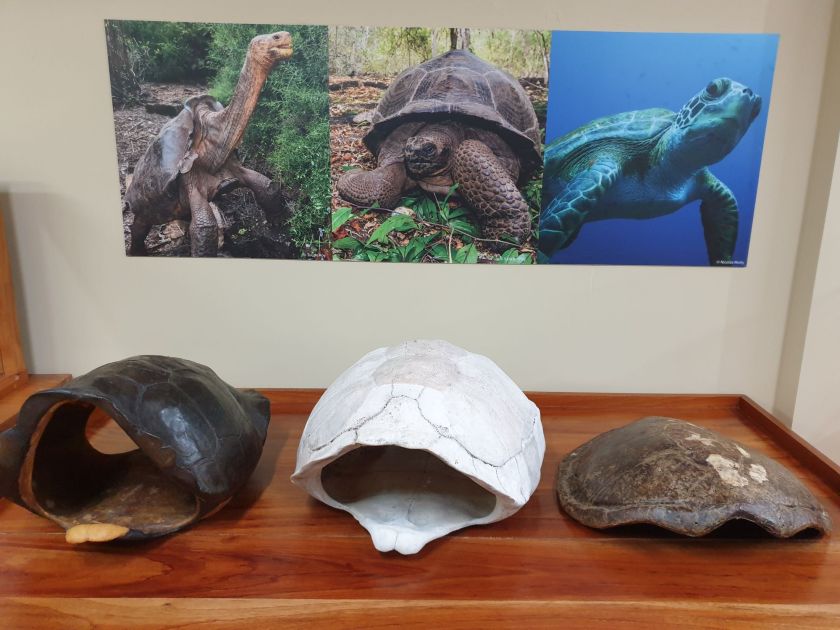 Solche Zuchtprojekte gibt es auch für andere Inseln. Dabei wird auch immer penibel darauf geachtet, eine Durchmischung der inseltypischen Arten zu vermeiden. Jede Schildkröte hat zusätzlich zu einem Mikrochip im Nacken auch eine Nummer auf ihrem Panzer, deren Farbe die richtige Insel kodiert. Heute kann man sie aufgrund der sorgfältigen Arbeit eindeutig zuordnen. Nicht so die bei Gründung des Nationalparks hier zusammengeführten, zuvor widerrechtlich „eingesammelten“ Riesenschildkröten. Ohne Genetik war die Ursprungsinsel nicht zu bestimmen, also werden sie auch nicht ausgewildert, sondern haben in der Station ihr neues Zuhause gefunden.