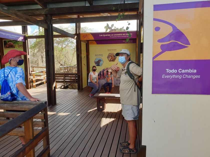 Beim Rundgang stutzen wir zunächst weniger über die Zäune, als mehr noch die allgegenwärtigen Kameras. Leider sind sie nötig, auch hier sind die Tiere nicht sicher. Gerade erst vor gut zwei Jahren, im Oktober 2018 wurden aus einer Aufzuchtstation auf Isla Isabella sage uns schreibe 123 Baby-Schildkröten gestohlen. Man vermutet, dass sie über Peru nach China geschafft wurden, um dort als Haustier verkauft zu werden. Geschätzter Endpreis bis zu 50.000$. Seitdem gibt es Kameras.