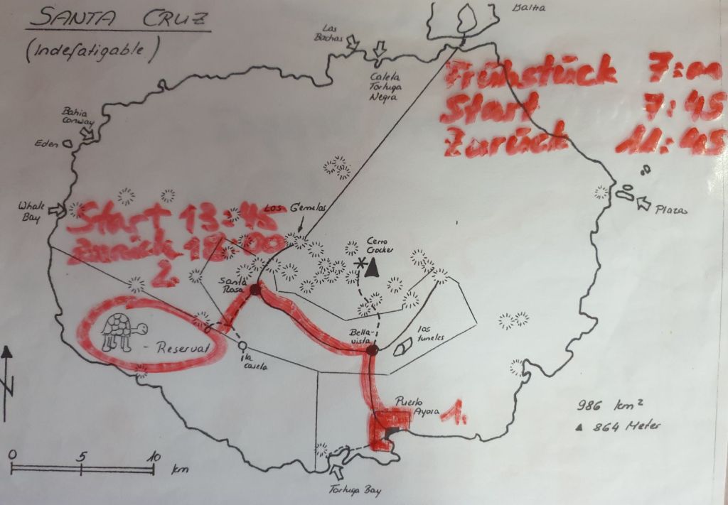 Nach einigen Tagen auf nur von Tieren bewohnten Inseln, geht es heute auf einen Abstecher zurück in die Zivilisation. Isla Santa Cruz ist die zweitgrößte, dafür bevölkerungsreichste Galápagos-Insel. Früh morgens erreichen wir das im Süden gelegene Puerto Ayora, mit ca. 15.000 Einwohner größte Stadt und unbestrittenes Touristenzentrum des Archipels.