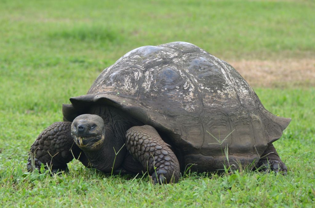 Obwohl man die ja auch nicht in einen großen Topf werfen darf. Auf fast jeder Insel hat sich eine eigene Art herausgebildet. Davon legen nicht zuletzt die unterschiedlichen Formen der Panzer Zeugnis ab. Wächst zum Beispiel die bevorzugte Nahrung auf einer Insel höher, muss dort auch der Kopf weiter nach oben. Da sichert die hilfreiche Sattelform das Überleben. Auf anderen Inseln ist die Situation wiederum eine andere.