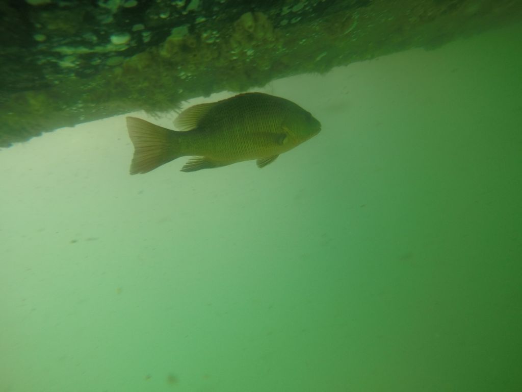 Also fange ich an zu kratzten in der Gewissheit, dass ich damit die Fische füttere. Ich arbeite wieder mit dem Metallspachtel, zumindest so lange, bis er mir aus der Hand fällt und in dem drei Meter tiefen Wasser versinkt. „Dann tauche doch einfach hinterher!“, sagt ihr? Könnte ich, aber die Sicht ist so schlecht, dass man nur maximal einen halben Meter sehen kann.