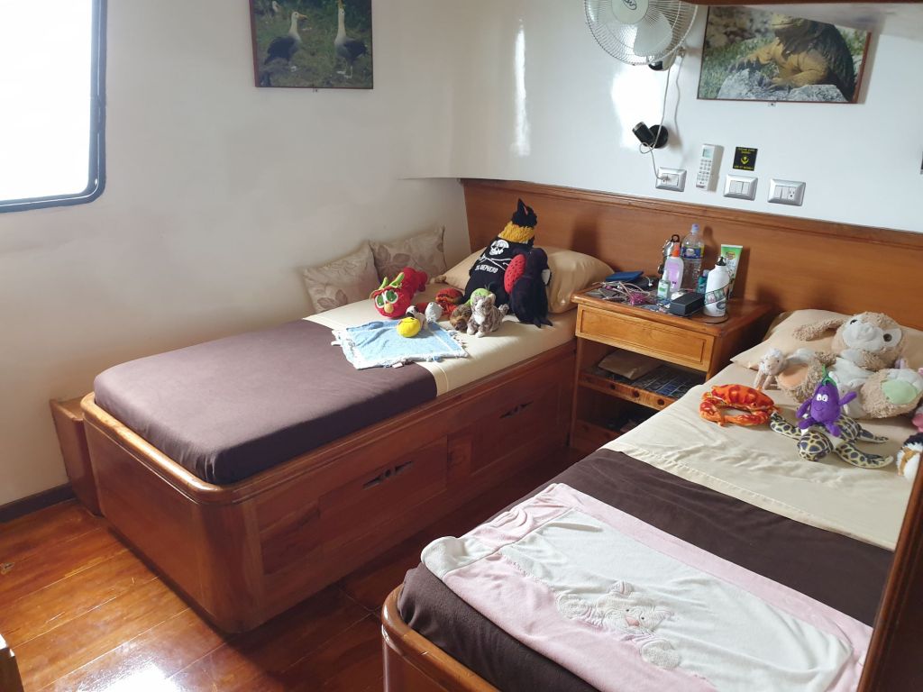 In mehreren Gesprächen erfahren wir auch einige Hintergründe zu der aktuellen Situation auf den Galápagos. Von den etwa einhundert Kreuzfahrtschiffen sind nur eine Handvoll unterwegs. Und um überhaupt Gäste zu bekommen, geht man mit den Preisen runter. Einiges an Konkurrenz ist eigentlich etwas teurer als die Angelito I. Es sind neue Boote mit Jacuzzi, flauschigen Teppichen und modern verspiegelter Inneneinrichtung. Ganz ehrlich, wer braucht das hier. Uns ist die schiffige Angelito I definitiv um einiges lieber. Wie auch immer, diese Luxusliner gehen jetzt mit dem Preis runter, so dass auch wir in den Genuss eines absoluten Sonderpreises gekommen sind. Dabei sollte man sich aber keinesfalls der Illusion hingeben, hier irgendwie billig davon zu kommen. Unsere Familie liegt (immerhin inkl. Flug) immer noch im fünfstelligen US$-Bereich.