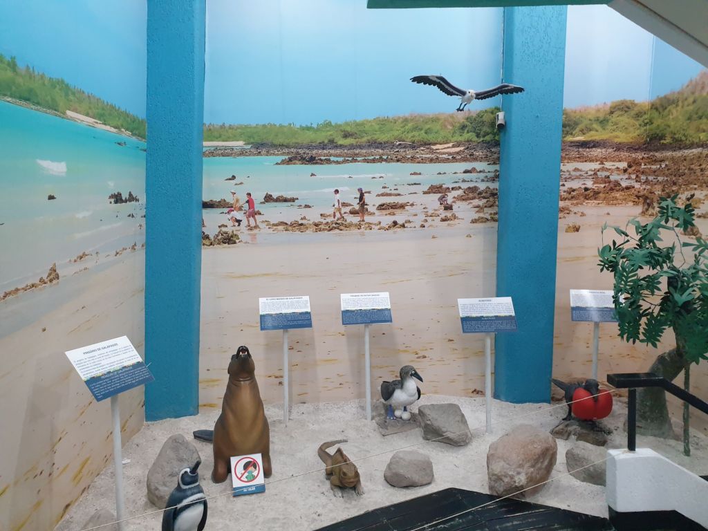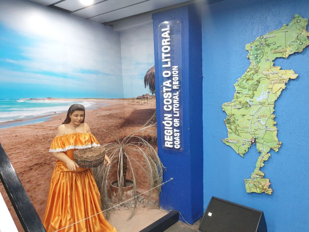 Zunächst besuchen wir den zentralen 30m-Monolithen mit krönender 4,5m-Weltkugel. Im Innern werden wir auf jeder Etage durch einen anderen Bereich Ecuadors geführt: Oriente (Regenwald), Sierra (Hochland), Costa und Galápagos werden kurz, knapp und kurzweilig vorgestellt.