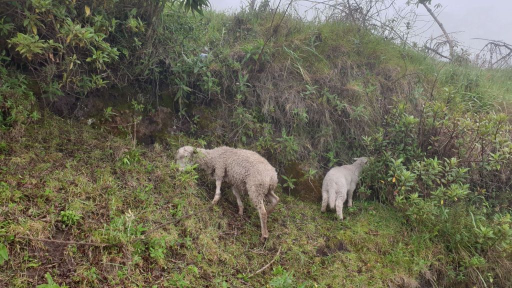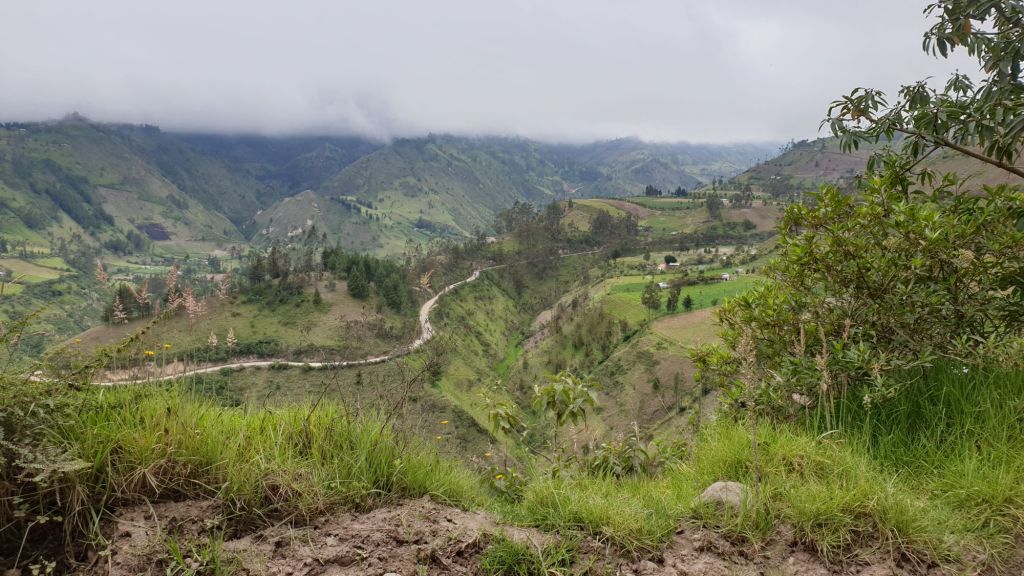 Auf einer Seite geht der Berg hinauf, auf der anderen Seite fällt es steil hinab. Spurtreue lohnt sich mehr als sonst. Nur gut, dass sich der Gegenverkehr rar macht. Am Rand grasen Schafe. Immer wieder eröffnen sich herrliche Ausblicke in die grünen Täler. Oft erspähen wir dabei auch gleich den weiteren Weg. Es geht runter zu einer kleinen Brücke, um auf 2.500m einen Fluss zu queren. Nicht viel später erreichen wir eine Madonnenfigur vor großem Kreuz auf 3.950m. Mal fahren wir unter der Wolkengrenze, dann wieder geht die Sicht gegen null.