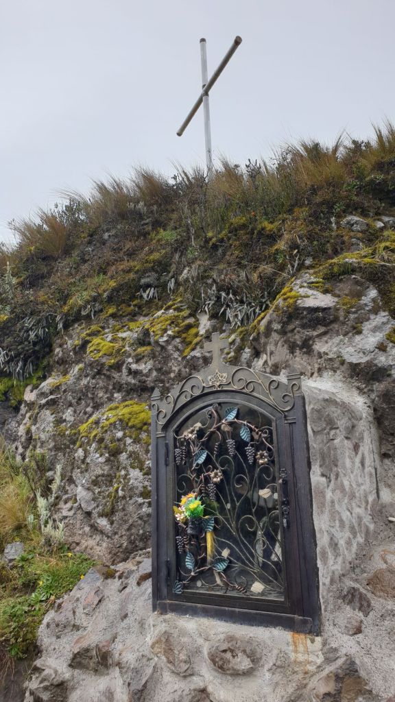 Der Wagen steht dann vor einem großen, aktuell inzwischen gewohnt spärlich besuchten Andenkenhaus. Wenigstens findet sich nicht nur Nippes, sondern der Schwerpunkt liegt auf Ponchos und anderen wärmenden Accessoires. Hier sind dann auch schon die (unserer Ansicht nach ehrlich gesagt deutlich zu) Jüngsten ausgesprochen geschäftstüchtig und präsentieren professionell eine Auswahl der angefragten Mützen. Unsere Kinder werden fündig und mit warmen Kopf machen wir uns auf den Weg zum Krater.