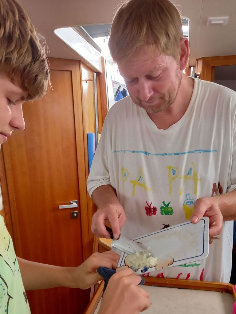 Es lässt sich auch ganz gut an. Die ersten Tage lassen wir das Dinghy in Ruhe, holen die Hängematte raus und faulenzen an Bord… also jetzt mal abgesehen von der notwendigen Bordschule natürlich. Nachmittags spielen wir (gerne „Kitchen Rush“) und abends wird der Grill angeworfen. Alles entspannt.