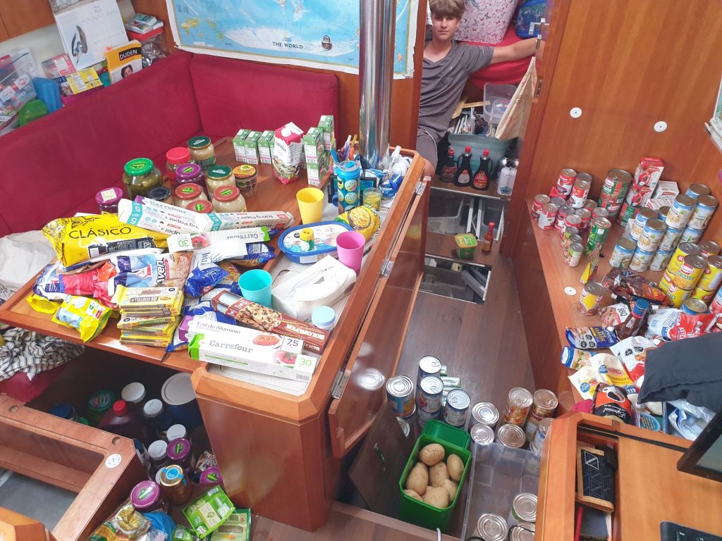 Für den Nachmittag hat der Skipper dann eine längst überfällige Inventur der Vorräte angesetzt. Wir zerren also alles raus, notieren Fehlbestände und räumen nach längerem Wildwuchs endlich mal wieder sortiert ein. Der Schweiß fließt und wir fragen uns, warum am Vormittag eigentlich geduscht wurde…