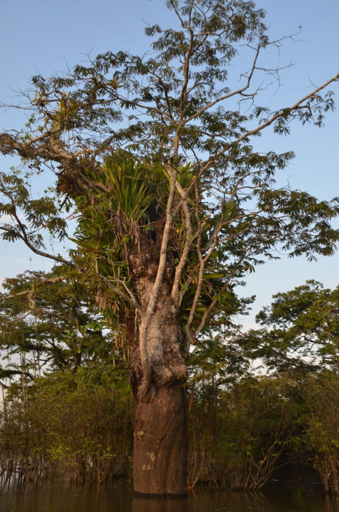 Da hat Samuel gefragt, warum so große Klötze an den Bäumen hängen. Die Antwort war, dass das Ameisen- oder Termitennester sind. Wenn das Wasser steigt, sind sie auf dem Bäumen gut geschützt.