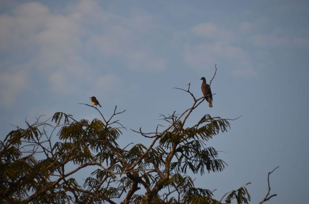 Erst fahren wir ein bisschen. Nach einer Weile sehen wir Affen. Es gibt zehn Arten von Affen. Wir haben Totenkopfäffchen gesehen. Sie sind sehr süß von Baum zu Baum geklettert. Als wir weiter fahren, sind zwei Aras über den Fluss geflogen. Ich und Samuel saßen vorn im Motorkanu und haben das Ufer nach Tieren abgesucht. Was sind das eigentlich für Vögel, die da ganze Zeit im Gestrüpp sind? Der Führer Rom hat gesagt, dass das „Stinky turkey“ sind. So hat er es ausgesprochen. Die Vögel sahen sehr schön aus.