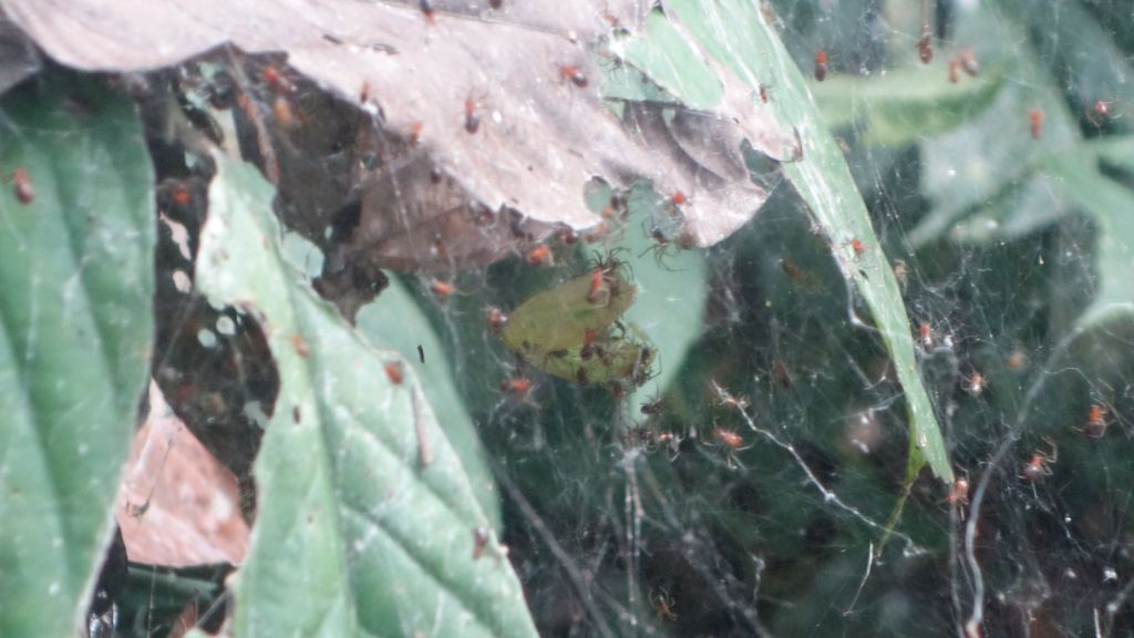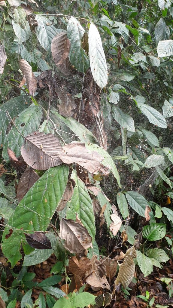 Da ist auch ein riesiges Spinnennest. Es wird von gaaaaaaaaaaaaanz vielen kleinen Spinnen zusammengebaut. Und was sind die Löcher an den Baumstämmen? Der Führer zeigt es uns. Er nimmt ein Stock mit Spucke und steckt den Stock in das Loch. Dann zieht er ihn langsam wieder raus und eine Tarantel kommt aus dem Loch. Man fragt sich, wie die überhaupt in das Loch reinkommt. Natürlich haben wir viele Fotos geschossen. Dann hat sich die Spinne schon wieder in ihr Loch, also ihre Wohnung, zurückgezogen.