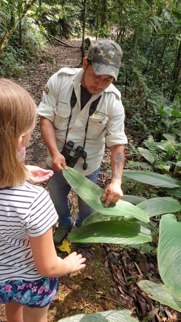 Danach haben ich und Samuel den verschiedenen Regenwäldern, durch die wir gefahren sind, Namen gegeben, da alles etwas anders aussah… zum Beispiel den „Wurzelwald“, den „Blätterwald“ und von mir die „Hellpunktenwald-Wälder“. Dort waren ein paar Bäume heller und ein paar dunkler. Kann auch mit der Sonne zu tun haben. Und noch eine Art von Affen. Vielleicht schaffen wir es, alle Affenarten zu sehen. Diesmal waren es zwei Milchbart-Affen. Die sehen mit dem weißen Bart sehr süß aus. Leider haben wir kein Foto.