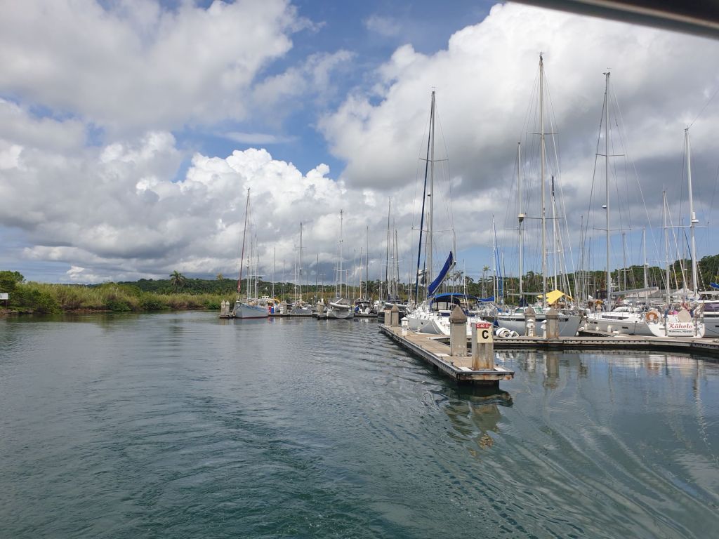 Der Preis für all das ist jetzt nicht gerade günstig. Zumindest für kürzere Aufenthalte. In den ersten sechs Tagen zahlen kleine Einrümpfer wie wir immerhin 1,25$ pro Tag und Fuß… wie immer in Panama plus Steuern. Inklusive Wasser, zuzüglich Strom. Das ist aber immer noch billiger als jede Liegeoption an einem Steg auf pazifischer Seite. Dazu geben lange Liegezeiten Rabatt. Würden wir über 90 Tage bleiben, wären es „nur“ noch 45Ct. pro Tag und Fuß.