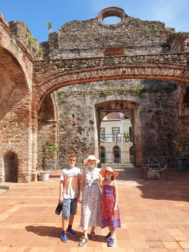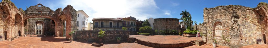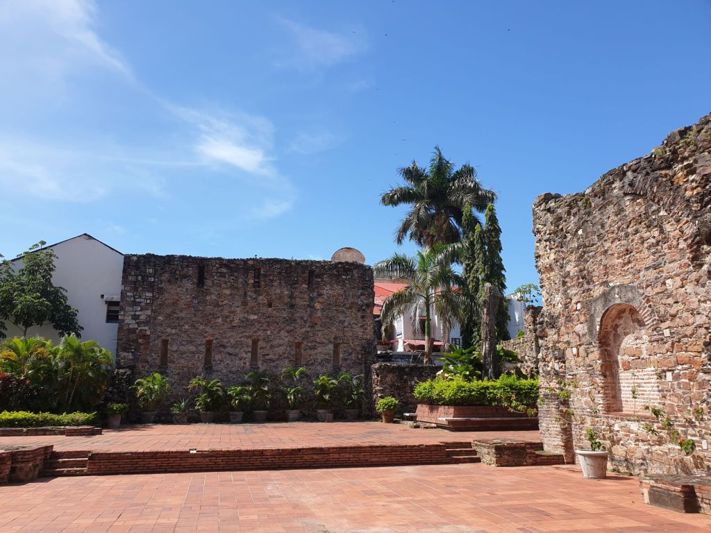 Die dritte, von der ganzen Familie genossene Attraktion der Kirche ist die Klimaanlage. Ja, hier in Casco Viejo ist praktisch jedes Gotteshaus klimatisiert. An einem sonnig-heißen Tag wie heute ist das eine wahre Wohltat. So gerne haben auch die Kinder noch nie Kirchen besucht. Doch vor der nächsten Abkühlung spazieren wir erst an der Ruine einer Jesuitenkirche, zugleich Panamas erster Universität vorbei.