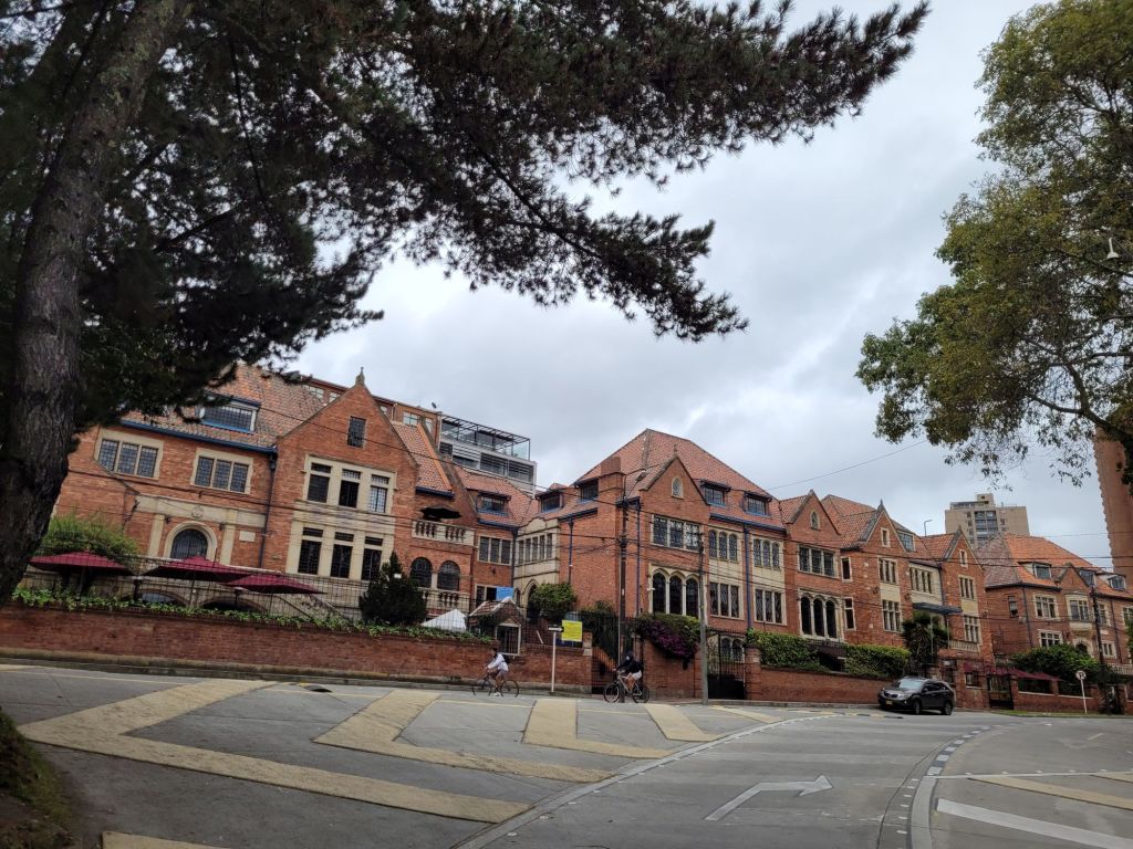 Neben dem Planetarium der Stadt ragt ein rotes Gebäude empor. Lina fragt, ob wir dazu eine Idee haben. Unser Verdacht bestätigt sich… es ist der Plaza de Toros de Santamaria, mithin eine Stierkampfarena. An den Februarwochenenden findet das hier noch legale Tötungsspektakel statt. Insbesondere die aus den Hoden der toten Stiere gemachte Suppe gilt als Delikatesse. Obwohl gar nicht mal so teuer, tummeln sich dabei bevorzugt reiche, ausgesprochen konservative Gäste auf den Rängen. Die Umgebung ist vor allem wegen der Proteste meist junger Menschen gesperrt… gleich um die Ecke liegt die Universidad de los Andes.