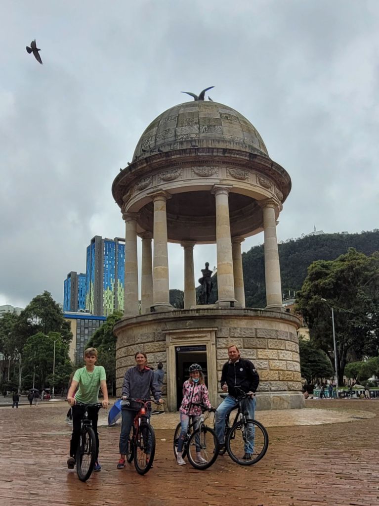 Nicht ganz zufällig ist der Beginn unserer kleinen Rundreise so geplant, dass wir gleich am ersten Sonntag das vor dem Hintergrund der Ciclovía absolut Naheliegende unternehmen können: eine geführte Radtour in Bogotá! Pünktlich holt unser deutschsprachiger Guide Lina uns am Hotel ab. Wir laufen ein paar Schritte zu Bogotá Bike Tours, bekommen unsere Räder uns los geht es.