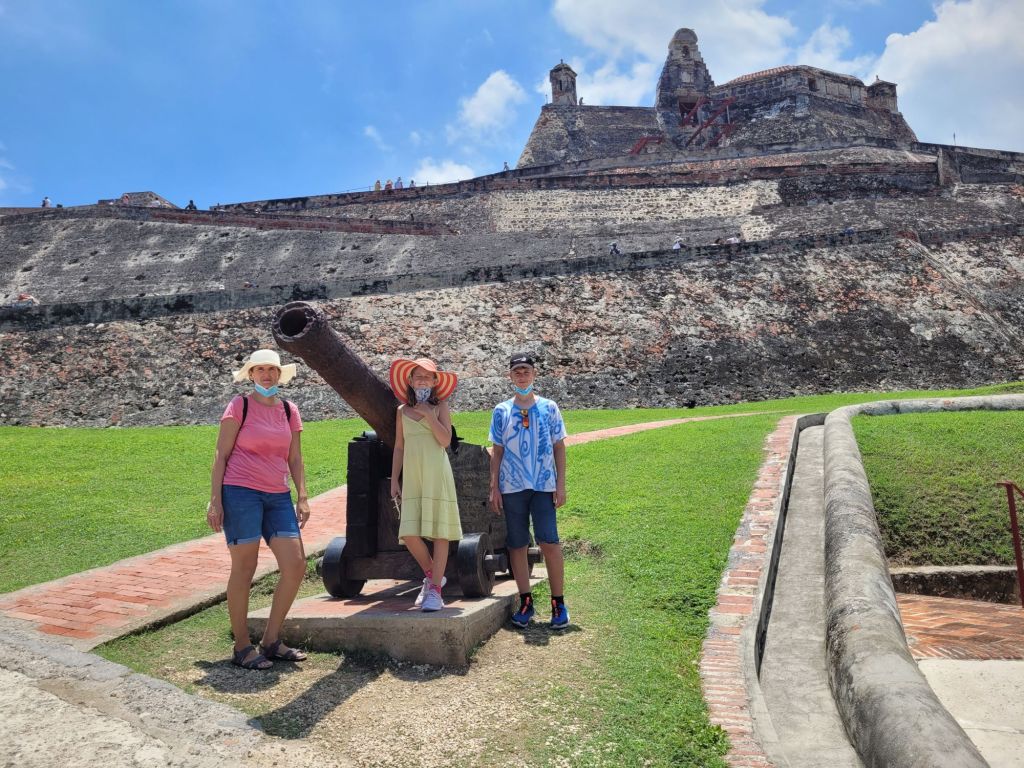 Wobei wir ehrlich sein wollen. Die Infrastruktur im Eingangsbereich ist offensichtlich auf ganz andere Massen ausgelegt. Auch heute profitieren wir trotz Feiertag von den Auswirkungen der Pandemie. Ausländische Touristen sind in Kolumbien ohnehin eher rar, aktuell nahezu nicht existent. So schauen wir uns die Festung vor allem in Gesellschaft von Kolumbianern an.