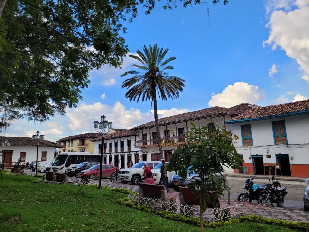 Doch zunächst machen wir den obligatorischen Rundgang. Erwähnte ich schon, dass praktisch alle kolumbianische Dörfer einen zentralen Platz mit Kirche haben? Salamina macht da keine Ausnahme. Auffällig oft werden wir hier neugierig, jedoch niemals unfreundlich beäugt. Später treffen wir uns mit Germán zum Abendessen und besprechen den nächsten Tag. Wir wollen zu den Wachspalmen und dort auch einen kleinen Ausritt machen. Er erklärt uns auch, dass wir seit Monaten die ersten ausländischen Touristen im Ort seien. Ein Umstand, der natürlich auch ihm als lokalen Guide arg zu schaffen macht. Glücklicherweise ist er „breiter aufgestellt“. Die Gesellschaft ist toll, das Essen ist lecker und wie fast immer im Kolumbien ausgesprochen günstig… ein netter Abend.