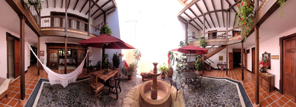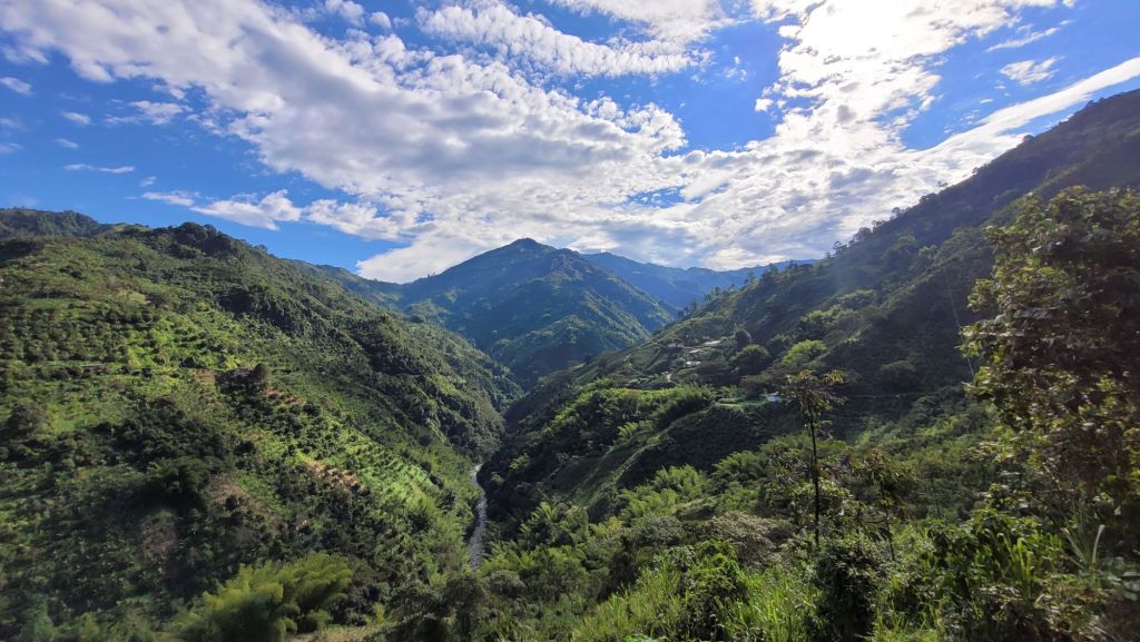 Nach einer gerade im letzten Drittel sehr kurvigen Fahrt mit tollen Ausblicken erreichen wir nachmittags Salamina. Der Ort mit gerade einmal 20.000 Einwohnern quetscht sich auf einen Berggrat auf gut 1.800m Höhe. Freundlich werden wir in unserer privat geführten Unterkunft „La Casa de Lola Garcia“ empfangen. Die spanischsprachige Hausherrin hat extra einen entfernten, englischsprachigen Verwandten Germán aktiviert, der uns hier vor Ort behilflich sein soll. Wow!