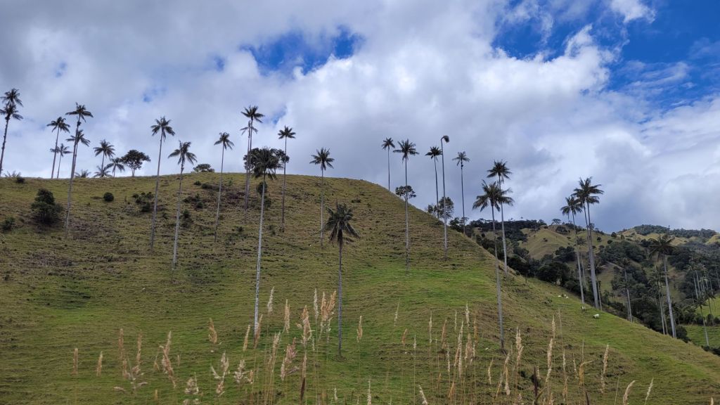 Unbeschadet erreichten wir das Valle de la Samaria und werden von Alex empfangen. Gestern hätten wir hier noch einen kleinen Ausritt und sicher die längere Wanderung gemacht. Heute bleibt nur Zeit (und schmerzarme Ausdauer) für einen kurzen Spaziergang. Trotzdem bekommen wir einen tollen Eindruck von den nur in Kolumbien heimischen Quindio-Wachspalmen.