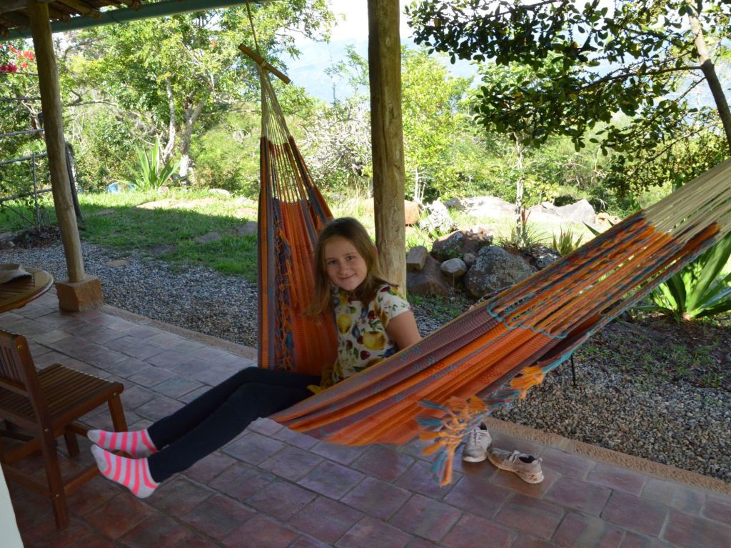 Ansonsten genießen wir die Gastfreundschaft der malerisch gelegenen Finca San Pedro. Samuel steht allmorgendlich früh auf und geht auf Vogelpirsch, mit Jorge knüpfen wir Armbänder, Katja führt die Kinder über die Farm.