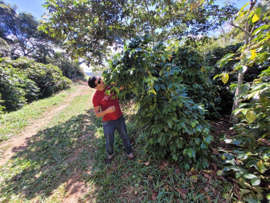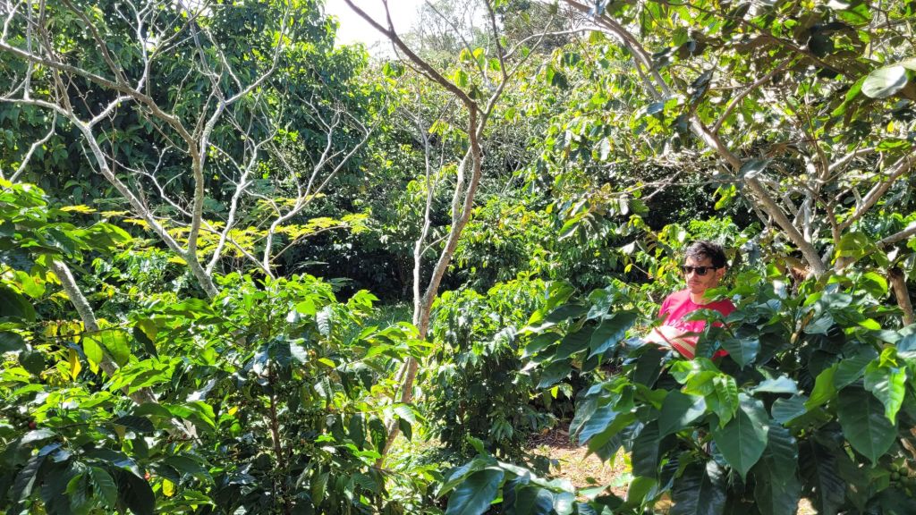 Bei Café Alfanía wird organischer Kaffee von höchster Qualität angebaut. Keine große Plantage im eigentlichen Sinne. Es ist ein dichtes, urwüchsig wirkendes Grün. Genau das ist beabsichtigt. Überall stehen etwas größere Bäume, in deren Schatten die Kaffeepflanzen gedeihen, durch die wir nun streifen. Die Sorten Castillo und Tabi liefern schmackhaften (und teuren) Café Arabica… Robusta sucht man hier vergeblich.