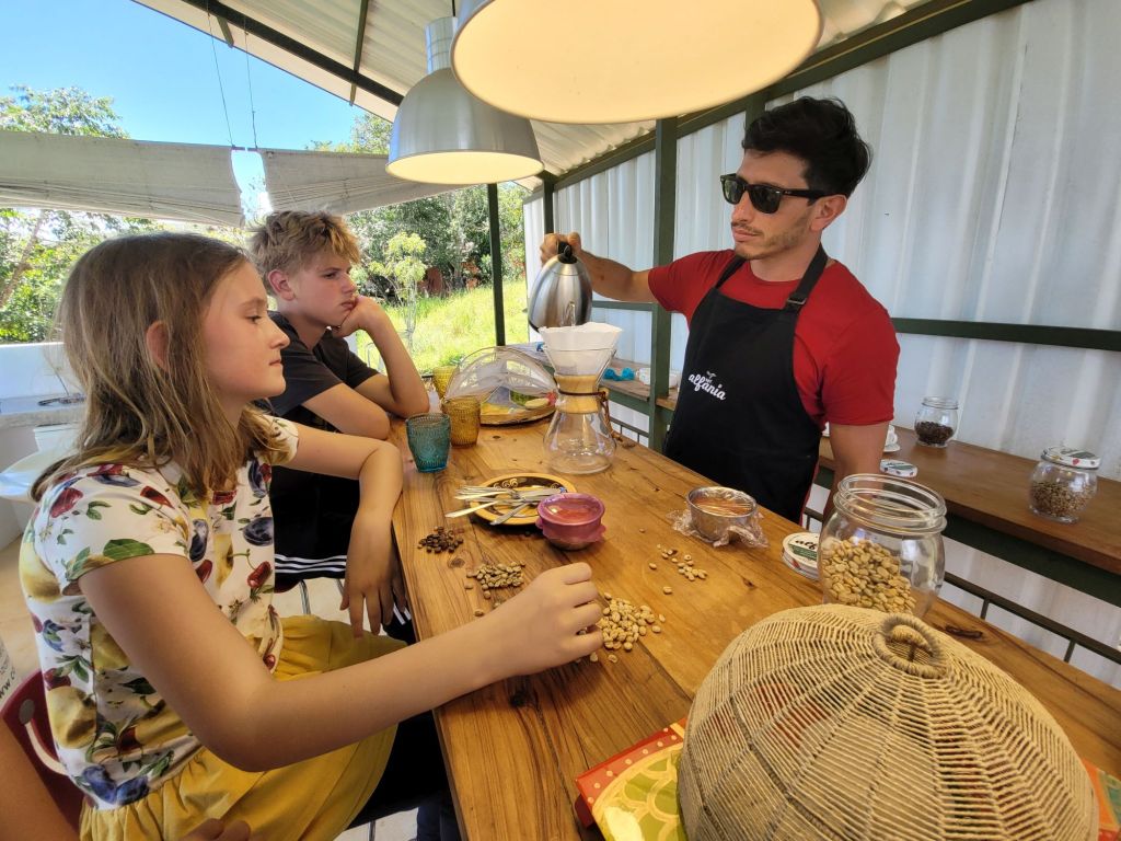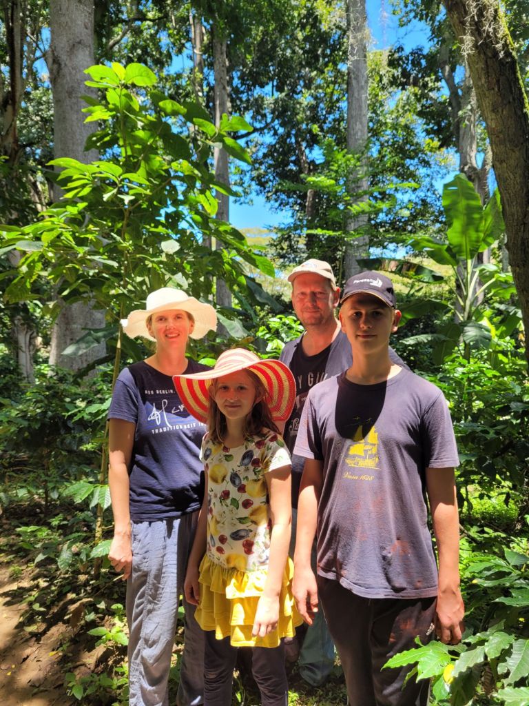 Wir verbringen ganze fünf Stunden auf dieser Kaffee-Tour. Die Zeit ist so schnell vergangen. Nicht einmal die Kinder haben nennenswert über Langeweile geklagt. Maila hat ihren ersten kleinen Schluck Kaffee getrunken und ebenso spontan wie bestimmt beschlossen, dass das auch für ganz lange Zeit ihr letzter Schluck war. Samuel hat auf dem Rückweg fossilienähnliche Steine gefunden. La Skipper hat ein neues T-Shirt und leckeren Kaffee bekommen. Der Skipper wird noch lange an die Arepa und den Ziegenkäse denken. So ist für jeden etwas dabei auf dieser Tour, die ganz nebenbei eine runde Ergänzung zu unserer Kaffee-Tour im ecuadorianischen Mindo darstellt. Geht es dort um die Verarbeitung, steht hier die Anpflanzung im Vordergrund. Danke, dass wir hier zu Gast sein durften!