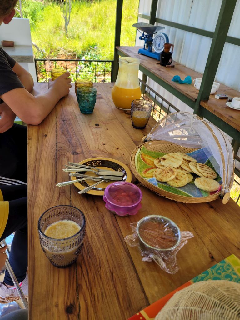 Arepa, Marmelade und Saft
