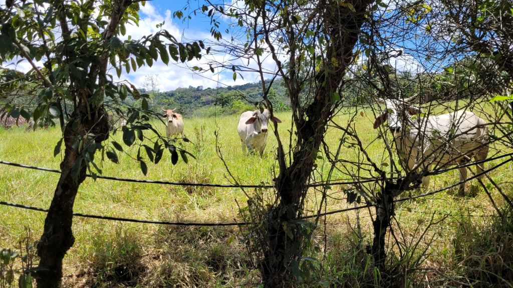 Zum Glück sind wir dann an der Weide vorbei geritten. Dakota ist etwas zurück gefallen und der Führer hat gesagt, dass Papa ganz schön schwer für sie ist. Es geht einen Erdweg hinunter. Es ist heiß und Dakota fällt immer weiter zurück, dann kommt auch noch ein Auto und für mich ist es ziemlich langweilig. Schließlich bin ich immer noch an der Leine. Wir gehen an verschiedenen Weiden vorbei und die Kühe werfen uns komische Blicke zu. Doch sie bleiben meistens, wo sie sind. Nach einiger Zeit fragt Papa ob ich die Zügel wiederbekomme und der Führer hat „Si!“ gesagt. Endlich kann ich die Zügel wieder in die Hand nehmen.