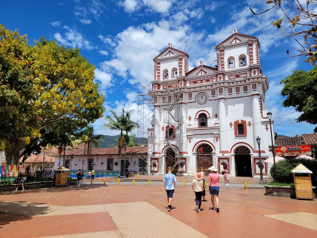 Natürlich gibt es auch in Guatapé einen zentralen Dorfplatz und natürlich steht da eine schmucke Kirche, die Parroquia Nuestra Señora del Carmen. Treue Leser kennen sie schon aus den kolumbianischen Kreuzwegen…