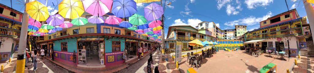 Danach geht es in das benachbarte Guatapé. Das historische Zentrum des vor 220 Jahren von den Spaniern gegründeten Ortes ist in dieser Gegend bekannt und beliebt. Kopfsteinplasterstraßen führen zwischen bunt angemalten Häusern, deren Sockel (Zócalos) oft mit Reliefkunst gestaltet, zumindest aber schön bemalt sind.