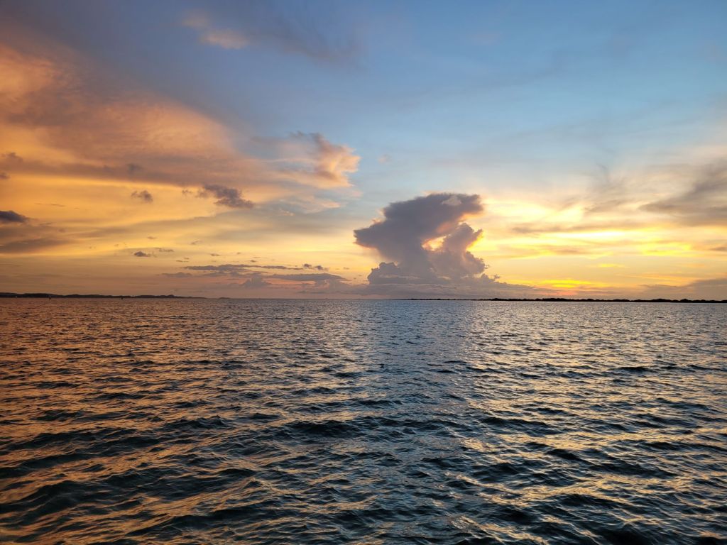Auf dem kurzen 110sm-Hüpfer von Cartagena nach Santa Marta gibt es abgesehen vom notorisch ungünstigen Gegenwind und dem erfreulich günstigen Neerstrom dicht unter der Küste besonders eine Kleinigkeiten zu beachten: Die Millionenstadt Barranquilla. Dabei ist streng genommen nicht Kolumbiens wichtigster Karibikhafen (zugleich Geburtsort von Shakira) das Problem, sondern der hier einmündende Río Grande de la Magdalena. Vor gar nicht langer Zeit verbrachten wir ca. 1.000km weiter südlich in Honda an seinem Ufer einen netten Abend. An der Küste sollte ein kleiner Segler jedoch nicht nur ausreichend Abstand halten, sondern tunlichst bei Tageslicht und guter Sicht passieren. Vor diesem Hintergrund teilen wir den Weg auf und steuern den gut geschützten Puerto Velero an. Hier gibt es sogar eine kleine Marina, doch wir werfen lieber in ausreichendem Abstand den Anker und genießen einen entspannten Grillabend.