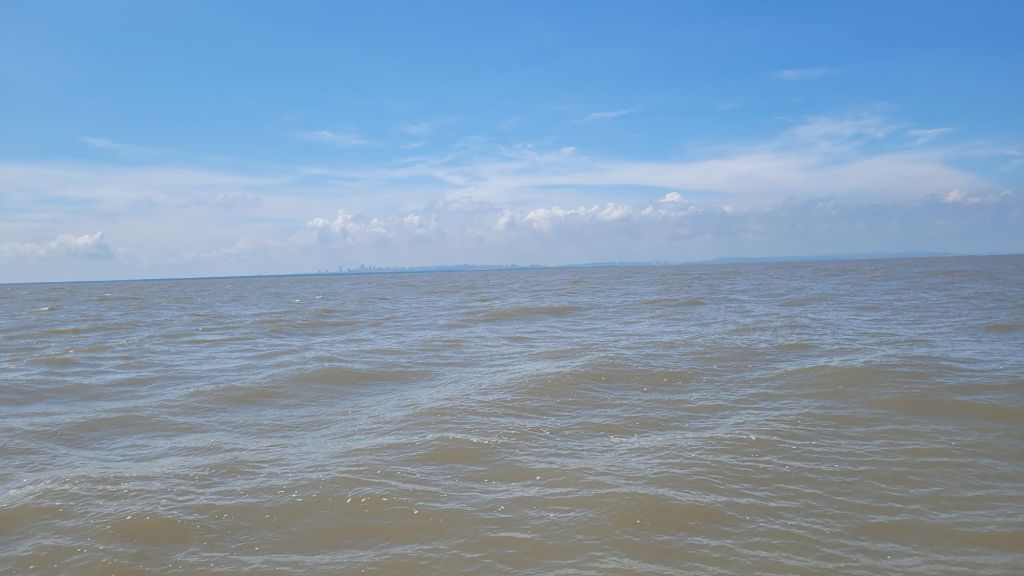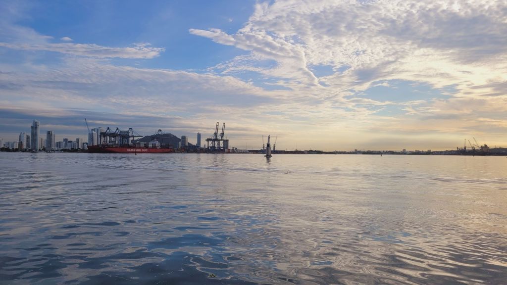 Am nächsten Morgen geht es weiter. Recht bald schon kommt Barranquilla und damit die Mündung des Río Magdalena in Sicht. Um sich einen Eindruck von seinen Wassermassen zu machen, werfen wir einen kurzen Blick auf den mittleren Abfluss MQ, also den langjährigen Durchschnitt des auf ein Normaljahr bemessenen durchschnittlichen Abflusses. Beim Río Magdalena liegen wir hier bei gut 7.200 m3/s. Zum Vergleich kommt Vater Rhein in der Summe seiner Mündungen gerade einmal auf 2.900 m3/s und selbst die um einiges längere Donau liegt an ihrer Mündung unter 6.900 m3/s. Das sind wie gesagt Mittelwerte. Wir haben aktuell Regenzeit. Da kann es vorkommen, dass der Río Magdalena mit 6kn rausströmt und dabei natürlich einiges Treibgut mit sich führt. Ganze Baumstämme sind keine Seltenheit.