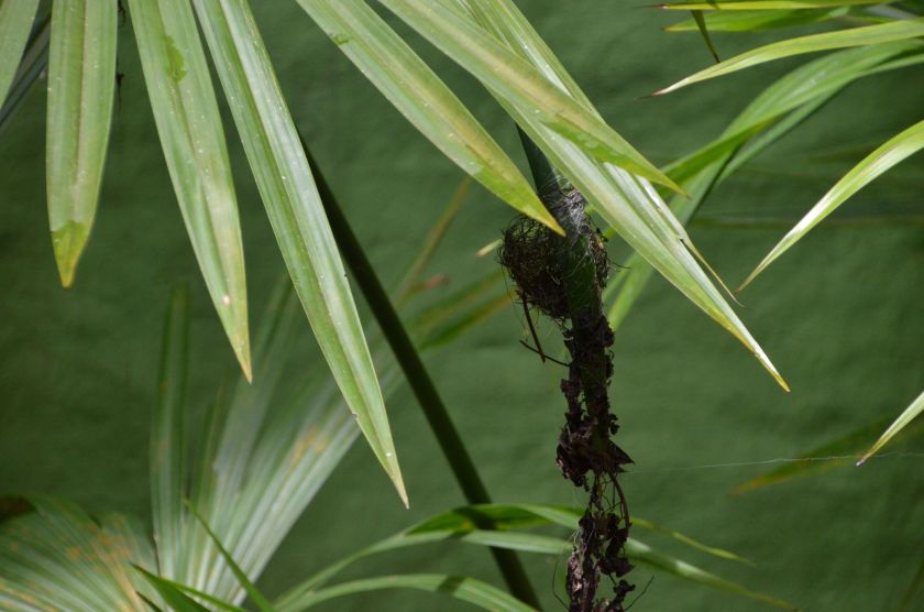 Dann bleiben wir doch erst einmal beim Rio Claro Nationalpark. Wir bewohnten dort ein Zimmer im zweiten Stock. An einem Baum etwas hinter unserem Zimmer und genau am Weg befindet sich ein kleines Kolibrinest. Es wird gerade gebaut, aber leider sehen wir die Erbauer nur einmal kurz und die Kamera ist zu weit weg.