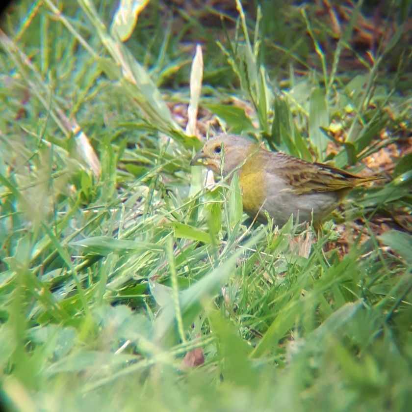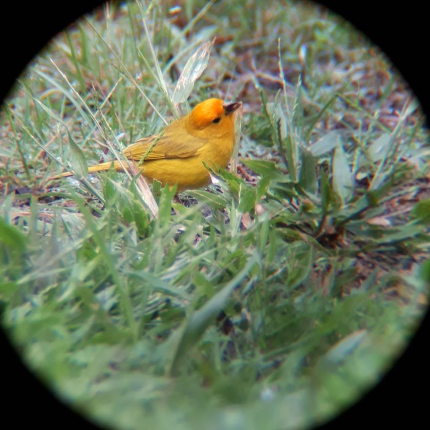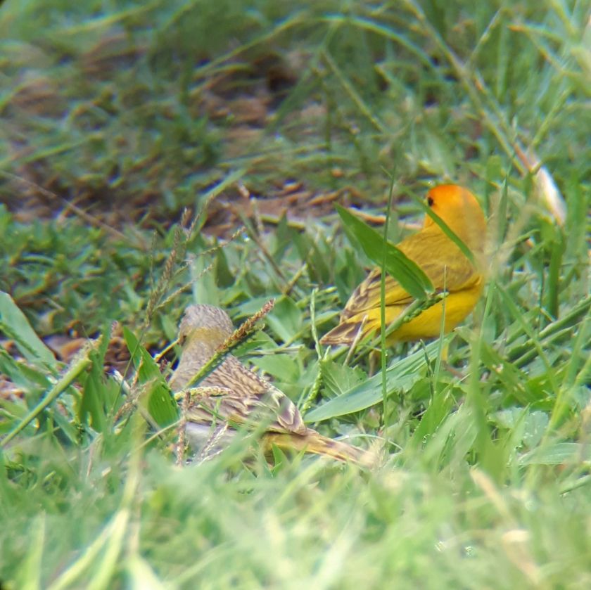 Auch kommt hier jeden Morgen ein Pärchen Safrangilbtangaren vorbei. Sie versuchen auch Samen vom Boden aufzulesen. Zum Glück ist genug für alle da.