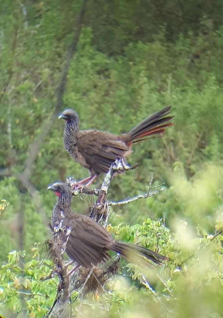 Die ganze Zeit hören wir einen seltsamen Schrei, finden aber keinen dazu passenden Vogel. Plötzlich sieht Mama ihn. Ein Tüpfelguan schreit dort immer herum. Und nicht nur der eine schreit. Es sind bestimmt drei oder vier Tüpfelguane. Bei dem Lärm war das auch zu erwarten. Nach ein bis zwei Stunden wachen die restlichen Familienmitglieder auch noch auf und kommen zu uns.