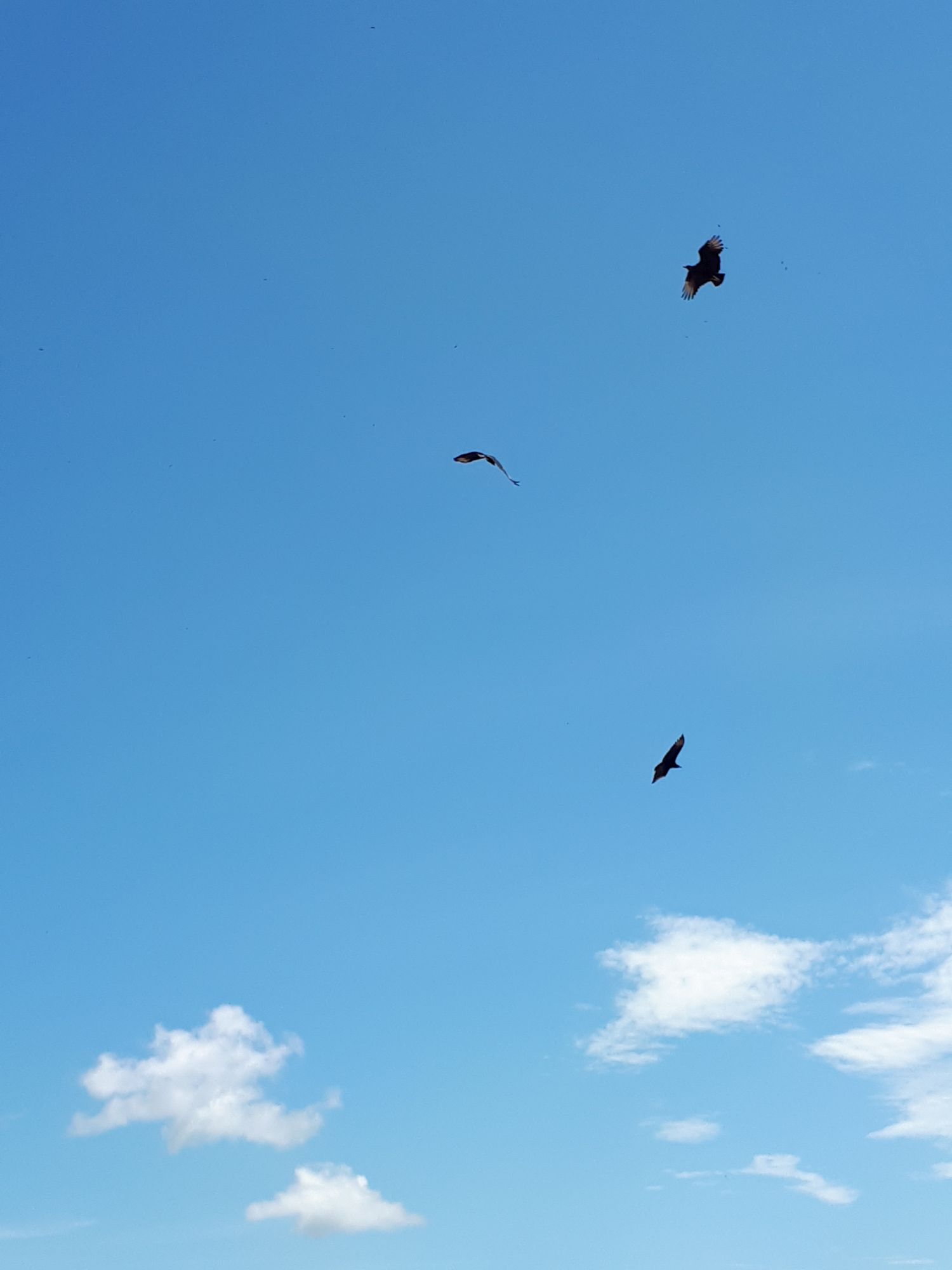 … und mächtige Rabengeier, die zu Dutzenden über den Himmel kreisen.