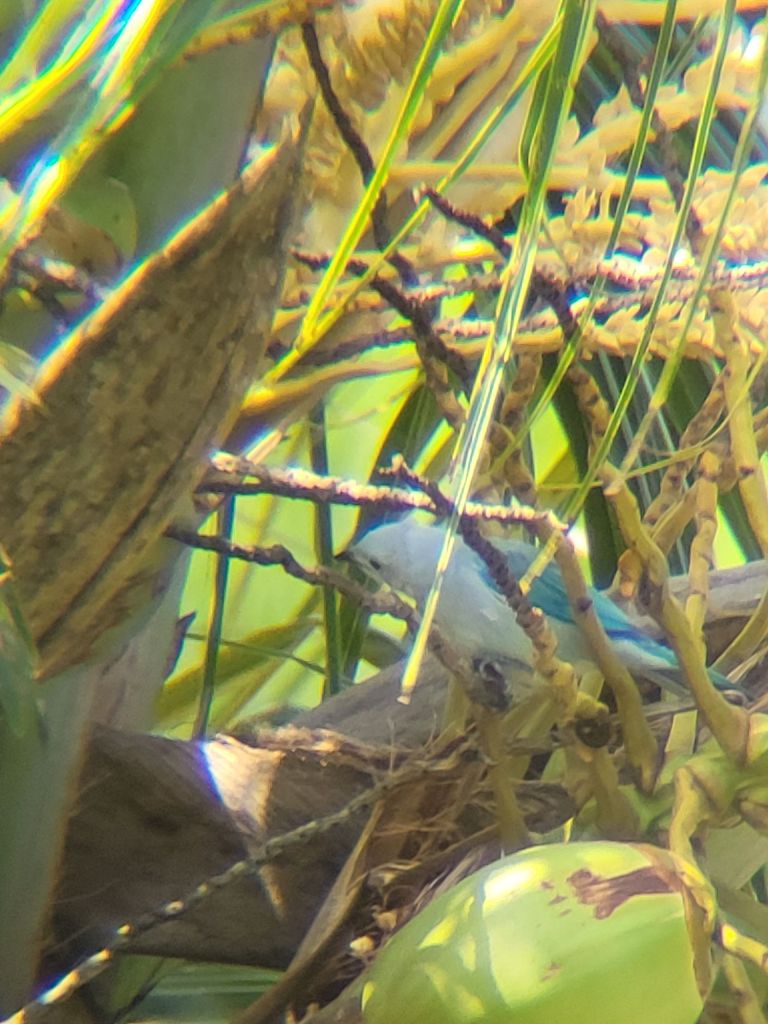 Wir haben bei Katja auch Armbänder gestrickt. Da fliegt plötzlich eine Rotscheiteltangare über unseren Köpfen entlang, landet kurz und fliegt wieder weg. Sie sieht ein wenig wie die Bischofstangare aus, nur mit einem roten Kopfgefieder. Einem Rotscheitel eben.
