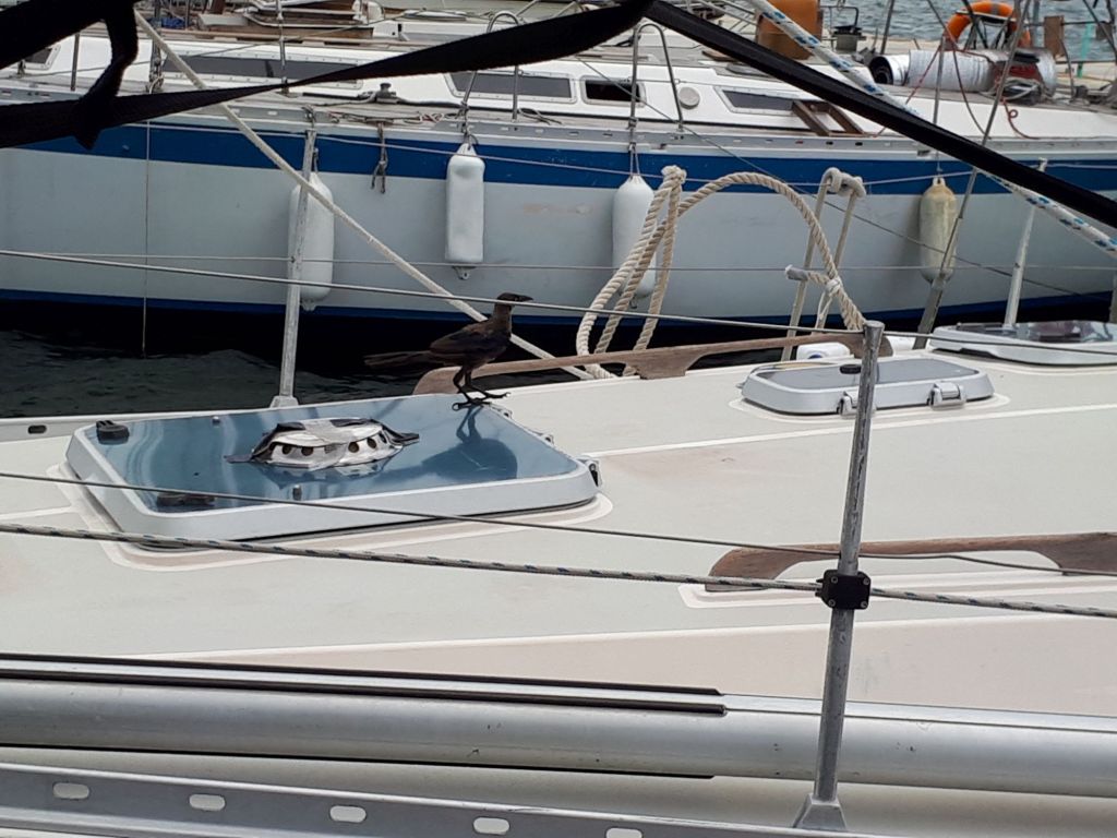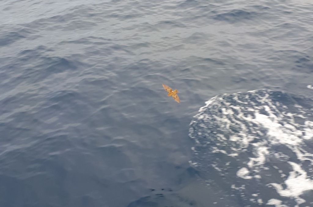 Doch nun weg vom Festland und auf das Wasser Richtung Aruba. Auf der Fahrt haben wir einige Vögel gesehen. Der Braunpelikan ist ein alter Bekannter. Ihn sehen wir inzwischen auf fast jeder längeren Route, die wir fahren. Ansonsten flog eine Königsseeschwalbe hoch über unseren Köpfen königlich entlang und ein bislang noch nie gesehener Maskentölpel begleitet uns über eine halbe Meile. Ein Weißbauchtölpel und ein Schneesichler schauen auch mal vorbei. Richtig süß war aber ein kleiner brauner Vogel, der dicht über das Wasser flatterte. Was war das bloß?