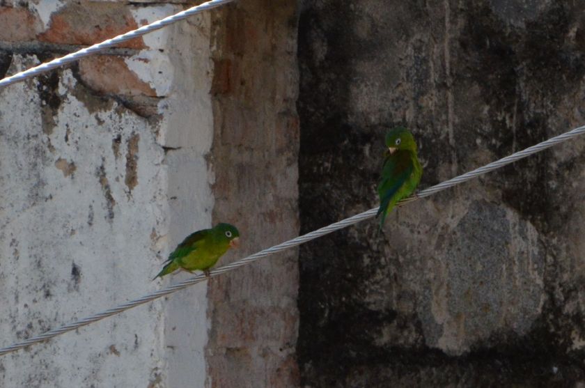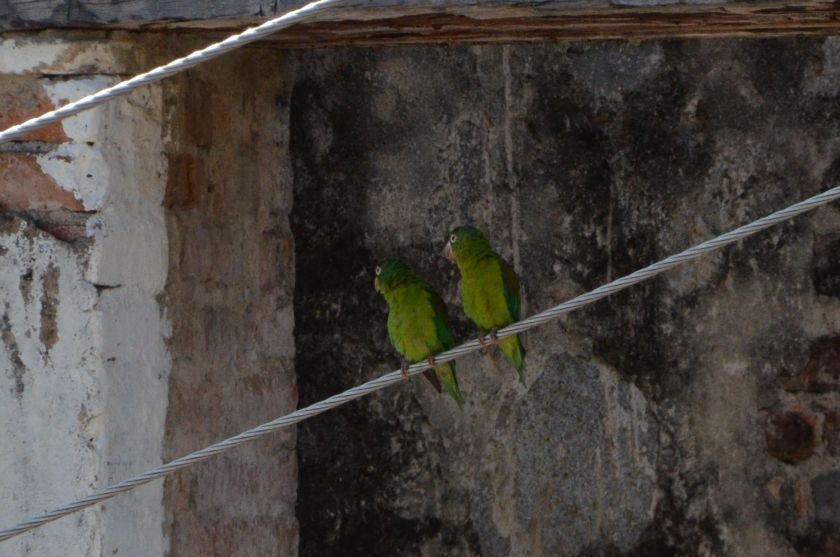 Gerade im Tayrona Nationalpark bei Santa Marta und in seiner Umgebung gibt es Unmengen an Vögeln. Wir haben dort eine Unterkunft in der zweiten Etage bekommen, von der aus man super Vögel beobachten kann. Viele sogar bei praller Mittagssonne. Zum Beispiel den Brauenzaunkönig, der immer sehr seltsam klingende Laute von sich gibt und auf den Dächern herumläuft. Doch ich gehe auch morgens auf Vogelsuche. Die Sonne ist gerade erst aufgegangen, da steige ich schon aus dem Bett und setze mich mit dem Fernrohr raus. Papa bleibt im Bett liegen. Er verpasst viele schöne Vögel. Das dunkelblau bis schwarze Jacarinitangarenmännchen hüpft beim Zwitschern immer in die Luft. Der Rotkappenspecht macht seinem Namen mit den Farben alle Ehre. Erstmals erspähe ich einen Einfarbspelzer. Die Graukopftangaren flattern für ein Foto leider zu schnell um das Haus und erinnern mit ihrem gelb-grauem Gefieder nur entfernt an Ihre schon oft gesichteten Verwandten, die blauen Bischofstangaren. Schließlich schaut mit dem Weißnackenkolibri auch ein Vertreter der kleinsten Vogelart vorbei.
