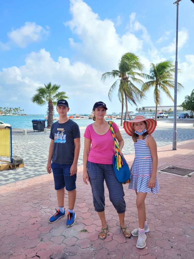Wir beginnen unseren Rundgang im Wilhelmina Park am südwestlichen Ende der Altstadt. Eine angenehme karibische Brise weht, die Flagge von Aruba flattert neben den Farben der Niederlande, das Gras ist kurz geschnitten und eine Statue der namensgebenden Königin strahlt in der Mitte. Sehr zur Freude der Kinder wuseln auch viele Echsen und Vögel umher. Dann kommen wir noch an einem kleinen Anne-Frank-Denkmal vorbei, das wir natürlich gleich für eine kleine außerschulische Geschichtsstunde nutzen.