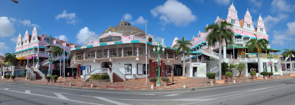 Die Besiedlung von Aruba konzentriert sich auf die windgeschützte (Süd-)Westküste der Insel. Hier liegt auch die ab 1796 rund um das Fort Zoutman entstehende Hauptstadt Oranjestad. Der dem niederländischen Königshaus entlehnte Name zeigt deutlich die kolonialen Besitzverhältnisse. Auch in der Architektur der Altstadt soll sich dieser Einfluss zeigen. Immer wieder sehen wir schöne Bilder der Stadt. Das müssen wir uns natürlich live und in Farbe anschauen.