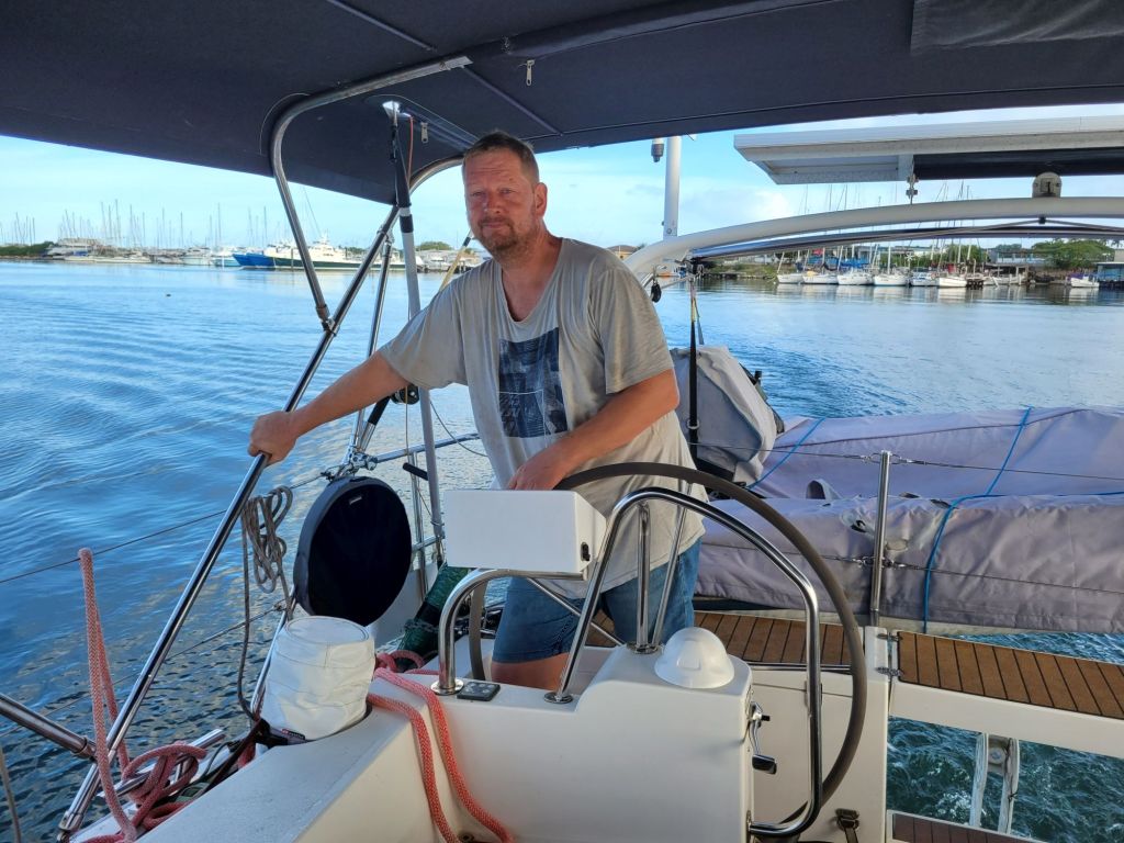 Die Formalitäten sind schnell erledigt. Richtung Süden haben wir nur leichten Gegenstrom und schon gegen Mittag ziehen wir das Groß als stützende Hilfe hoch und biegen ab Richtung Curaçao.