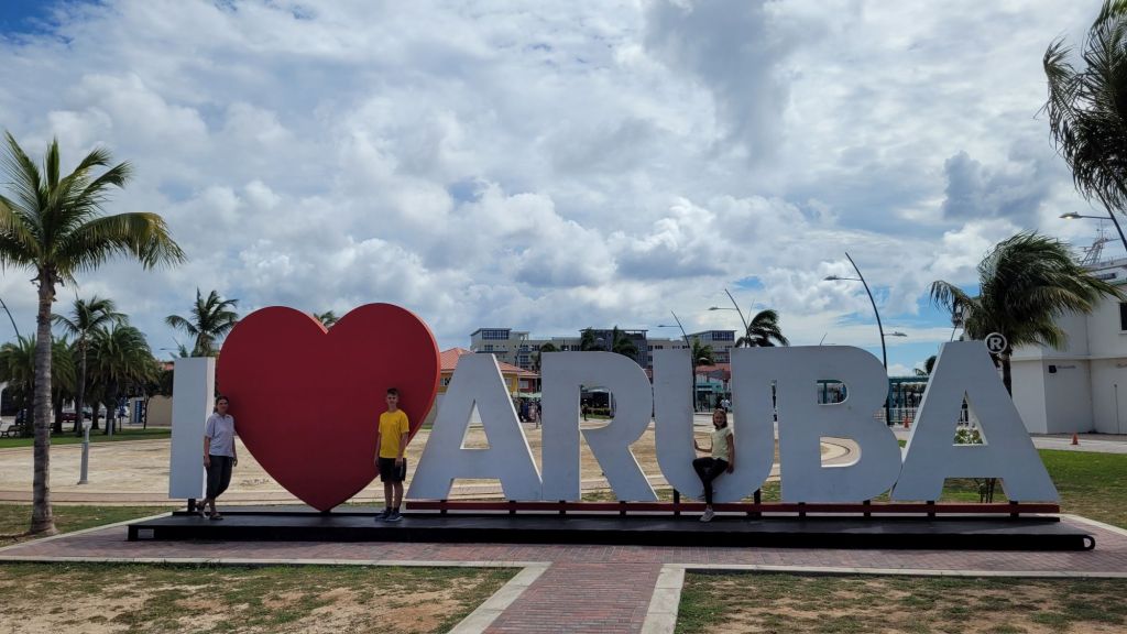 Nun gut, machen wir halt in der Zwischenzeit ein obligatorisches „I Love Aruba“-Foto. Wir sind ja auch nur Touristen.